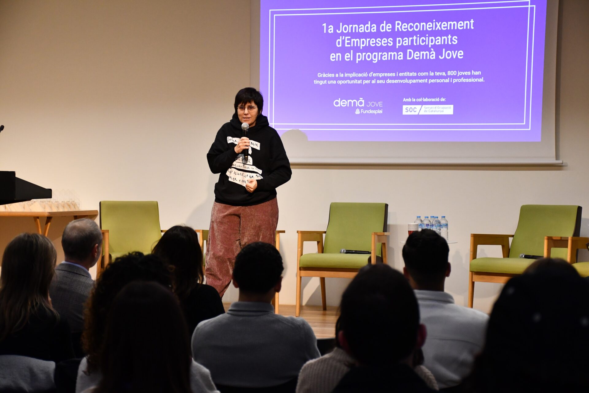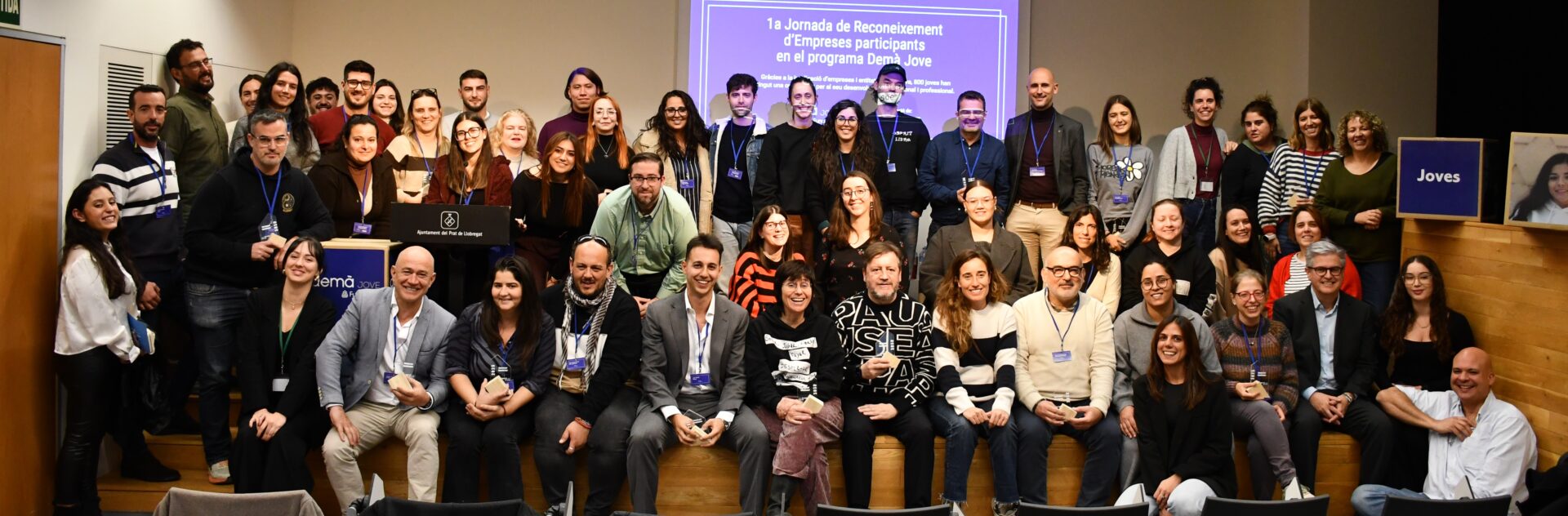 Hemos celebrado en el Auditorio Cèntric del Prat de Llobregat la Jornada de Reconocimiento a las Empresas que han participado en el Demà Jove. Ha sido un acto que ha reunido más de una treintena de empresas, entidades y administraciones que han participado en alguna edición del Demà Jove (FPODual del SOC) y donde se ha puesto en valor su tarea esencial. El objetivo principal ha estado agradecer su compromiso con la formación y la inserción laboral de las personas jóvenes, así como reforzar los vínculos entre el tejido empresarial y los programas de formación dual.