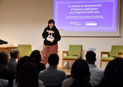En la jornada las protagonistas han estado precisamente las personas jóvenes, que han conducido el acto, han compartido sus vivencias y han mostrado su talento, evidenciando el impacto real que tiene la colaboración empresarial en sus vidas. En este sentido, jóvenes participantes destacan del Demà Jove “como desde el primer día puedes aplicar los conocimientos y, a la vez, aprender en situaciones reales”.