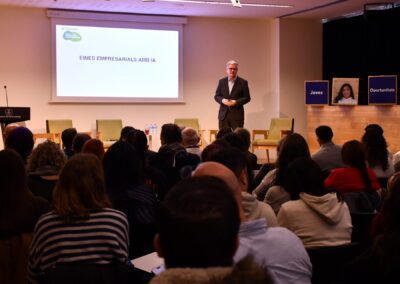En la jornada también ha participado Joan Sans con una ponencia sobre inteligencia artificial, para mostrar las posibles aplicaciones de la IA en el trabajo y, a la vez, empoderar a las personas jóvenes a formarse y tener en cuenta estos cambios tecnológicos para encontrar mejores opciones laborales.