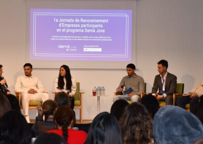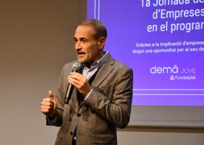 La jornada ha contado con la participación de un centenar de personas, entre representantes de empresas, entidades, administraciones y jóvenes del programa. Cristina Rodríguez, directora general de Fundesplai, ha agradecido la implicación de las empresas y ha destacado la importancia de programas como el Demà Jove: “Nosotros queremos demostrar que las personas jóvenes tienen valores: son responsables, respetuosas, tolerantes, comprometidas… Con el Demà Jove lo que hacemos es darles una oportunidad y, sobre todo, esperanza, y esto solo es posible acompañándolos, dándolos formación y, sobre todo, trabajando directamente en una empresa”. En los parlamentos institucionales también ha participado Juan Carlos Moreno, Teniente de Alcaldesa del Ayuntamiento del Prat, quien ha destacado que “la formación para los jóvenes es imprescindible para generar talento”.