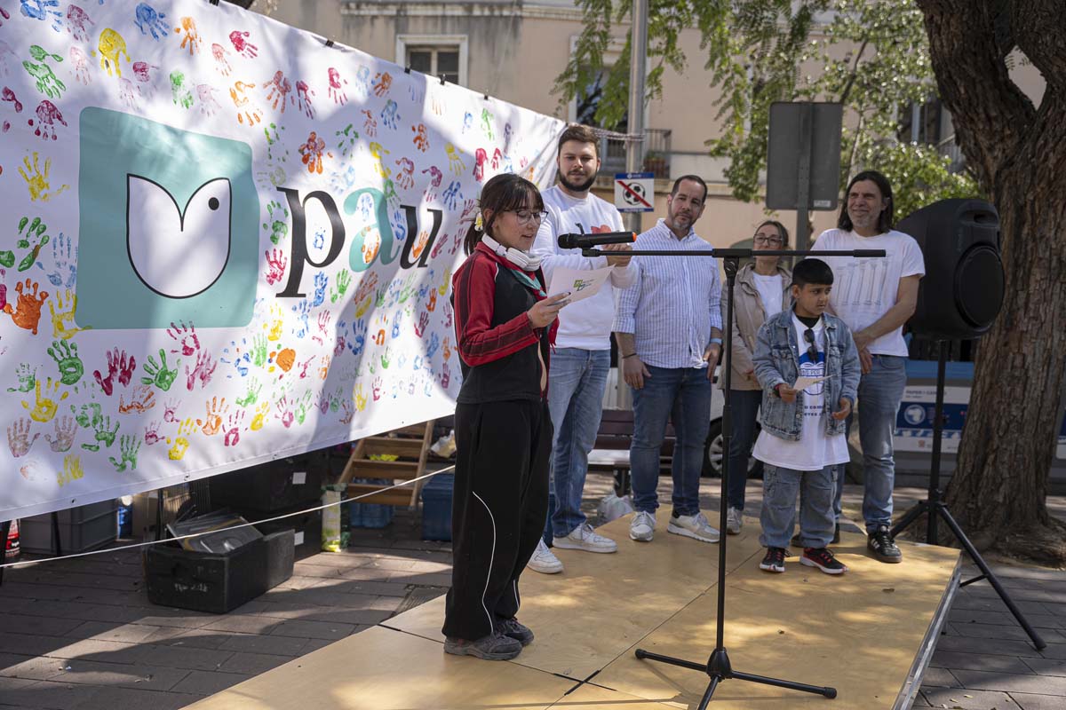 Posteriorment, Basit Sawari, infant de Ponts per la Pau, i Alba Cepero, jove de l’esplai Tricicle, han llegit un manifest on han demanat una societat on tots els drets humans siguin garantits, respectats i exercits per tothom. A més, han reivindicat un planeta sostenible i saludable, sense exclusions ni desigualtats: “Perquè sense justícia ambiental, la Pau tampoc no és possible”.