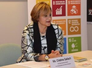 Cristina Gallach és periodista i és experta en geopolítica, ja que ha treballat a l’OTAN, l’ONU i la Unió Europea. També va ser Alta Comissionada per a l’Agenda 2030 del Govern de l’Estat, en el moment de posada en marxa dels Objectius de Desenvolupament Sostenible (ODS). Actualment, és membre de GWL Voices, una organització formada per dones líders d’arreu del món que treballa per construir un sistema internacional igualitari.